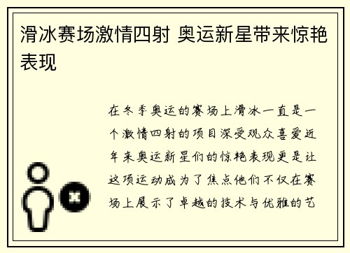 在冬季奥运的赛场上,滑冰一直是一个激情四射的项目,深受观众喜爱。近年来,奥运新星们的惊艳表现更是让这项运动成为了焦点。他们不仅在赛场上展示了卓越的技术与优雅的艺术表现,更凭借自己的拼搏精神和不屈的意志...