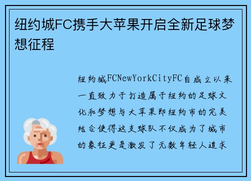 纽约城FC携手大苹果开启全新足球梦想征程